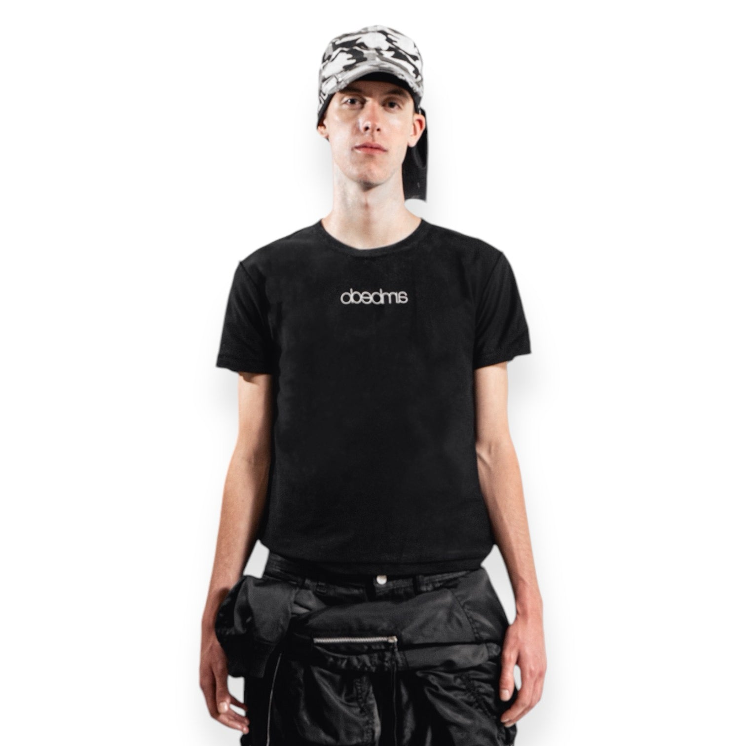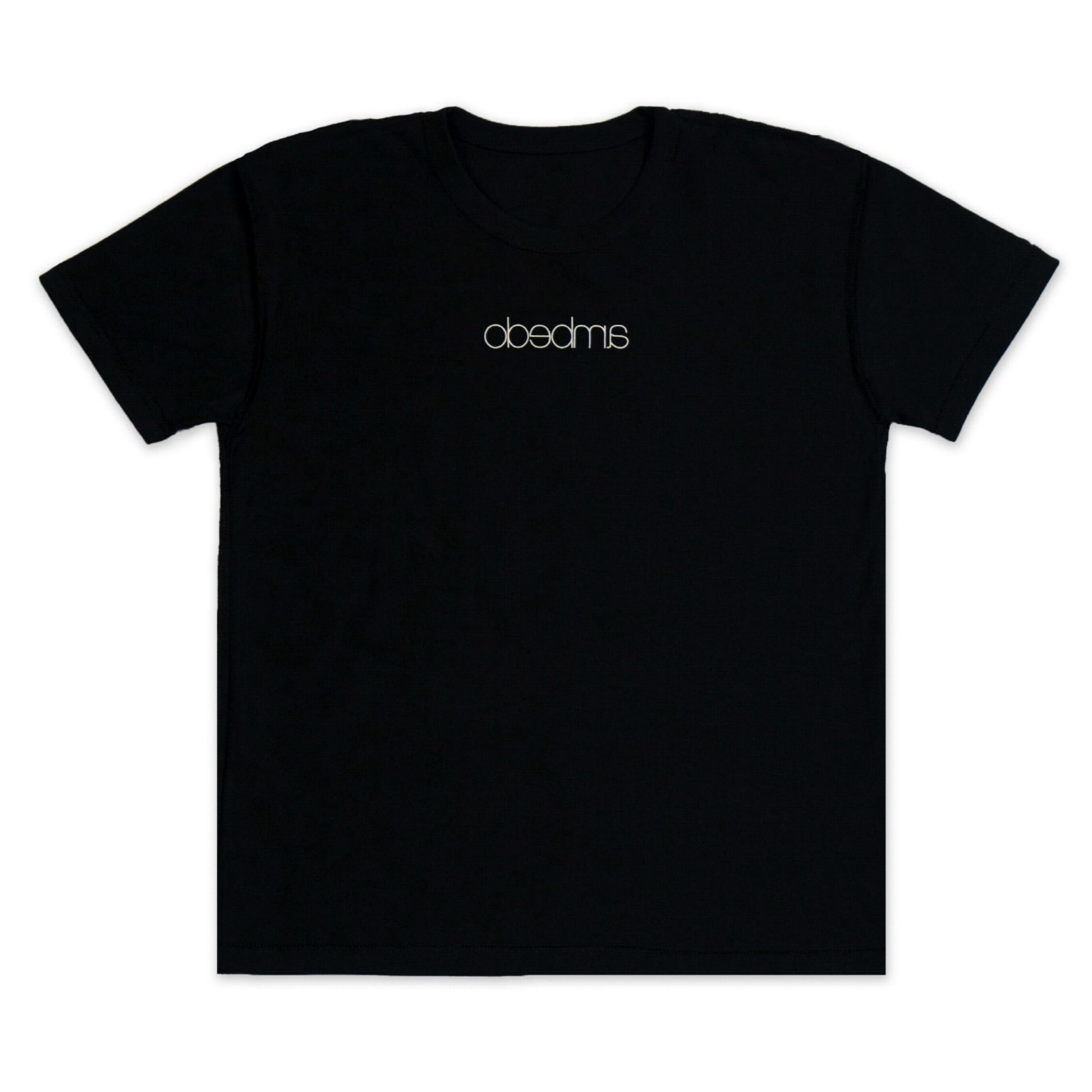 Cut and sewn with a 5.5 oz combed cotton. Elements include a standard fit torso with a subtle crop, mid-bicep sleeve length, a bound rib knit collar, baby lock cover stitching, and a screen-printed graphic across the chest with an inverted graphic on the reverse side.